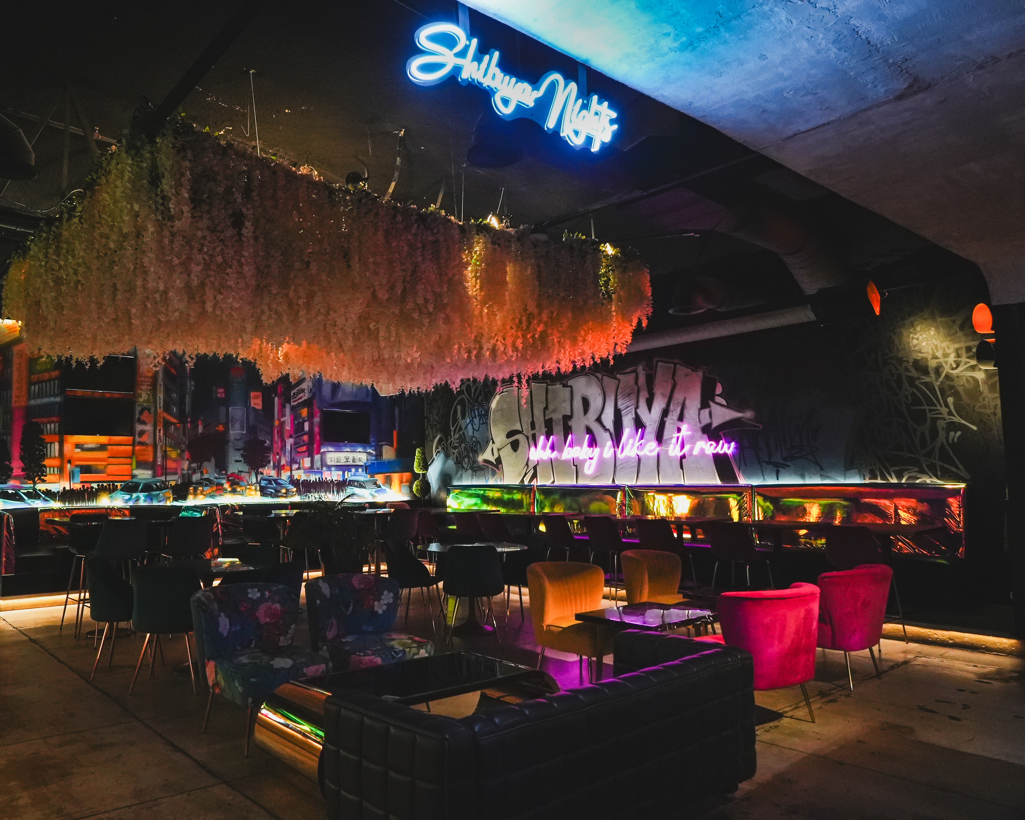 Shibuya Nights is the back bar at the Japanese-inspired Cloak & Petal restaurant. Shibuya Nights was designed after the lively streets of Shibuya and Harajuku in Tokyo, Japan. With Japanese street art and vibrant hues as a backdrop, enjoy dozens of sake varieties, along with cocktails like Shiso Peachy; Geisha's Kiss, Japanese Mule, and Wake Me Up, F* Me Up. This Little Italy neighborhood hotspot earned MICHELIN recognition in December 2025 in the “Good for: Groups” category.