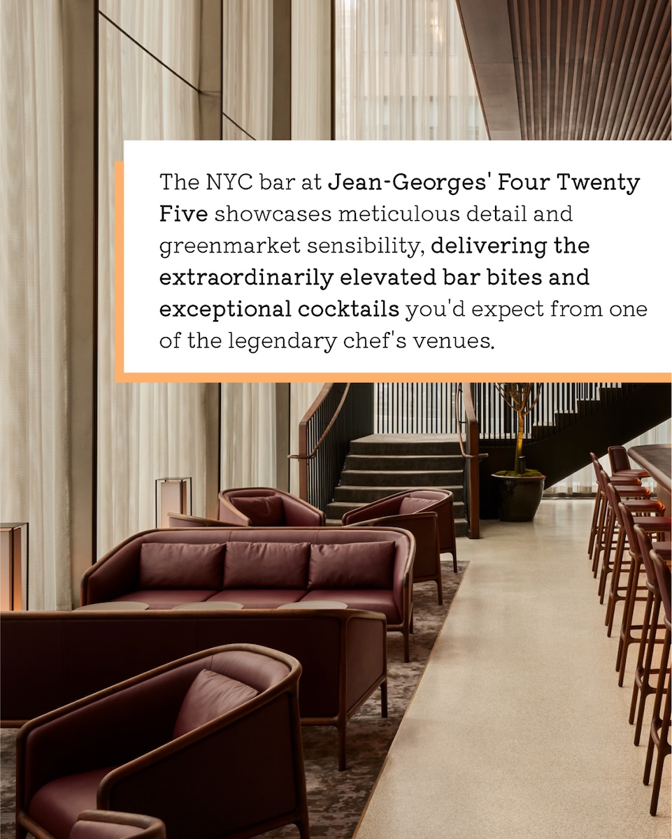 Immerse yourself in the opulence of The NYC Bar at Jean-Georges’ Four Twenty Five, where exceptional cocktails and fine dining meet impeccable design. This venue showcases a greenmarket sensibility, delivering an extraordinary experience that lives up to the legendary chef’s reputation.