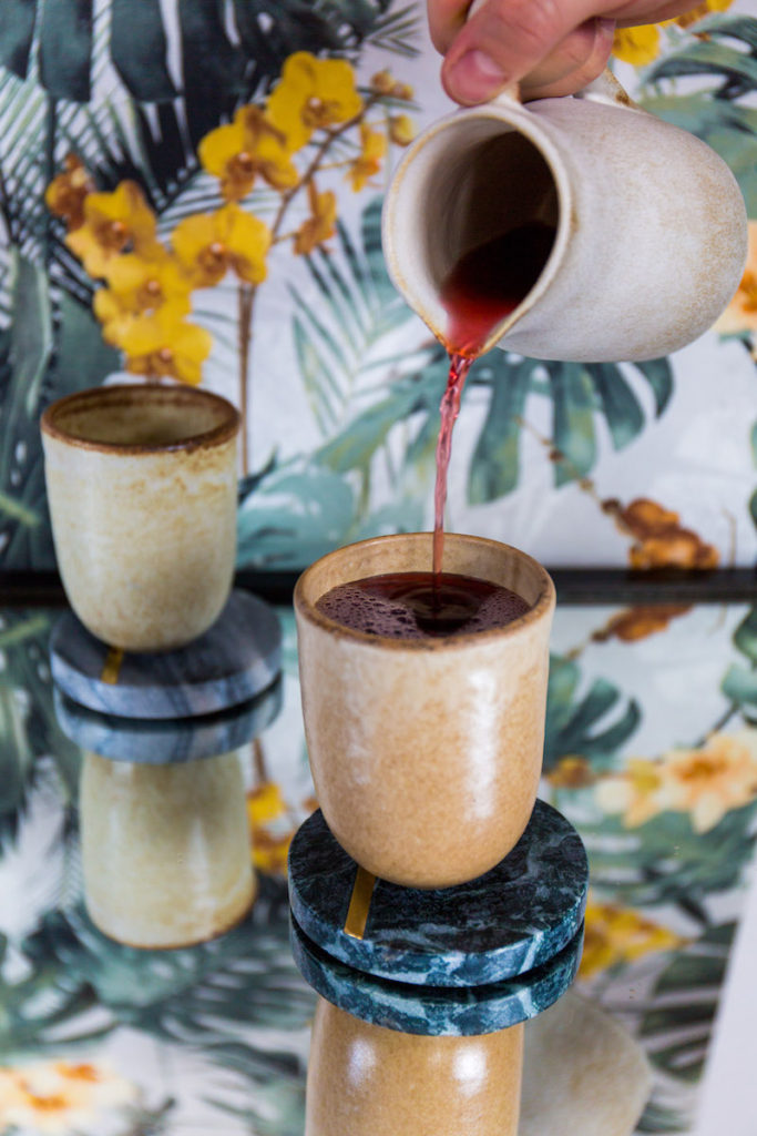 Method: Simmer on low heat for an hour. Serve warm or over ice. Glass: Ceramic cup Garnish: Fruit slices